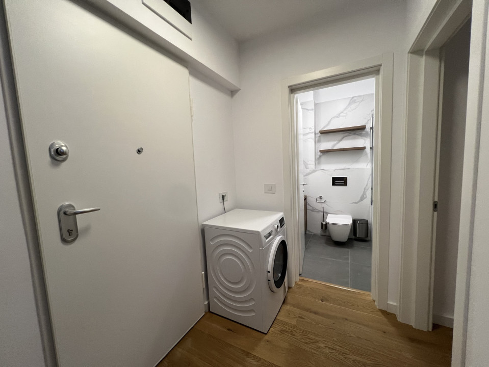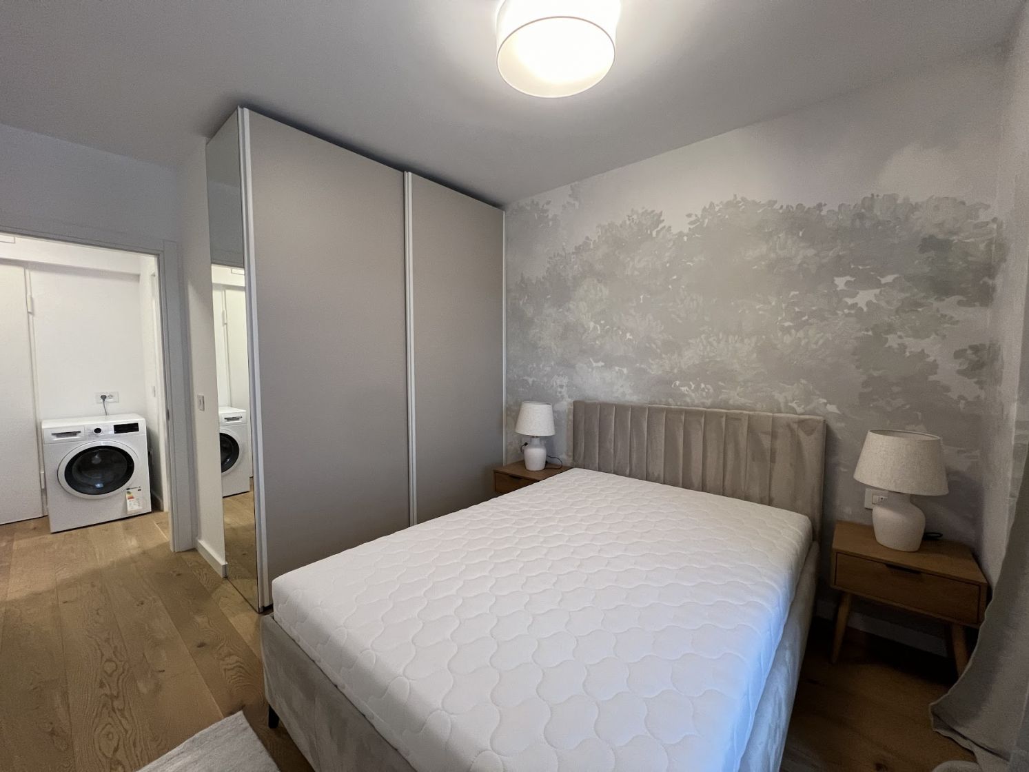 Locuința este complet nouă, mobilată și utilată, cu electrocasnice Bosch și mobilier realizat pe comandă, oferind un confort deosebit. Printre facilitățile disponibile se numără mașina de spălat rufe, uscător, aer condiționat, centrală proprie și încălzire în pardoseală.
