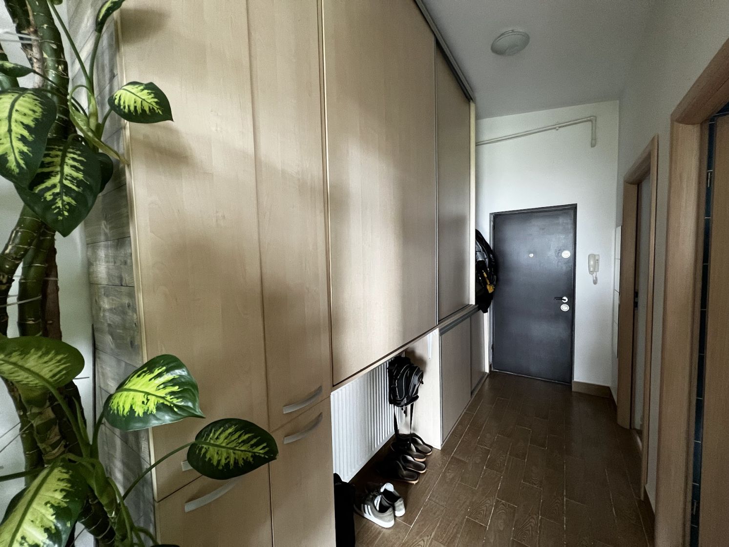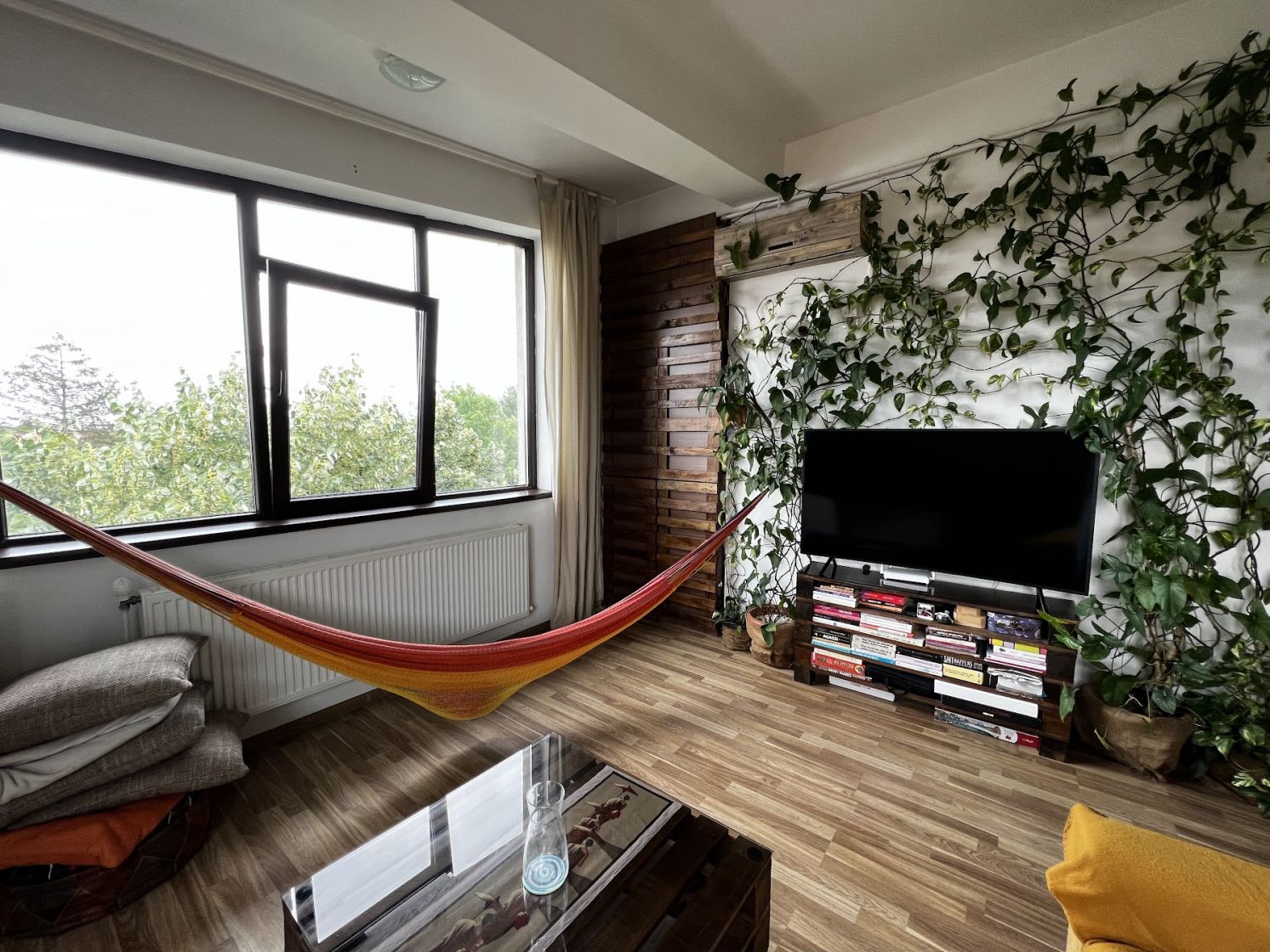 Apartamentul este complet mobilat și utilat, gata pentru a vă muta imediat. Dotat cu centrală proprie și aer condiționat, asigură confortul termic pe tot parcursul anului. Baia este modernă și luminoasă, beneficiind de un ferestre Velux care permite luminii naturale să inunde spațiul.