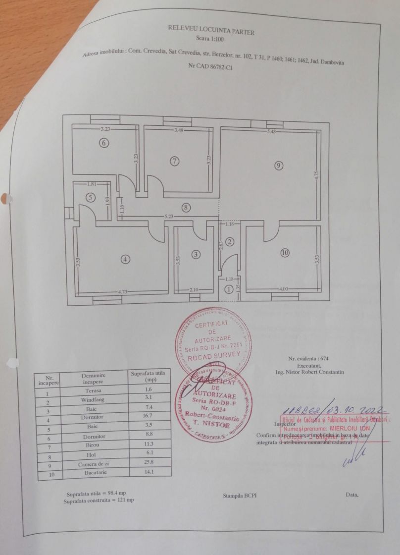 Imobilul are 3 dormitoare, un living, bucatarie inchisa, doi bai si acces in pod. Exista toate utilitatile racordate. Localizarea este extrem de convenabilă, la doar 5 minute distanță de centrele comerciale Kaufland Crevedia și Lidl Buftea, cu acces direct de pe o stradă asfaltată.